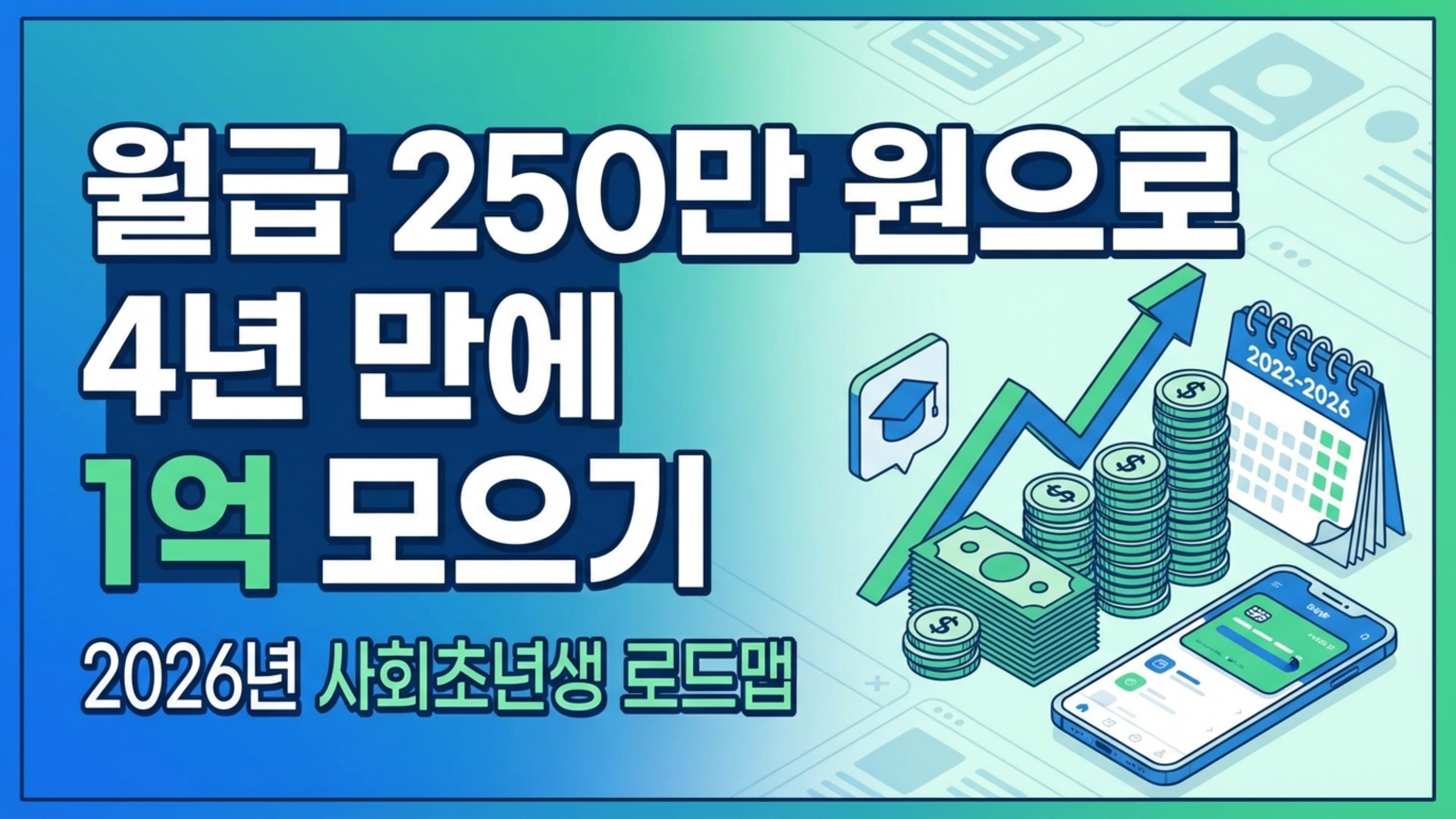 첫 월급을 받아든 순간, 통장 잔액과 1억이라는 숫자 사이의 간격에 막막함을 느끼는 건 당연합니다. 그런데 단순히 아끼고 모으는 방식과, 2026년에 살아있는 정부 제도를 제대로 활용하는 방식의 결과는 완전히 다릅니다.