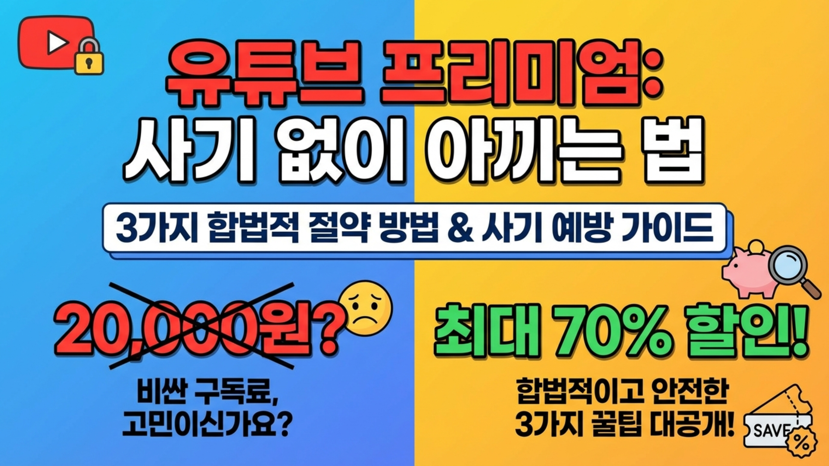 유튜브 프리미엄 2만 원 시대? 사기 안 당하고 구독료 70% 아끼는 합법적 방법 3가지