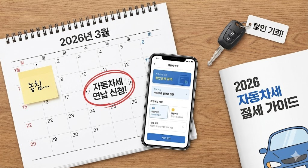 메타 디스크립션: 2026년 자동차세 연납 1월 신청 시 최대 4.6% 할인! 3월 연납 가이드, 배기량별 세액, 위택스 신청 방법까지 완벽 총정리.