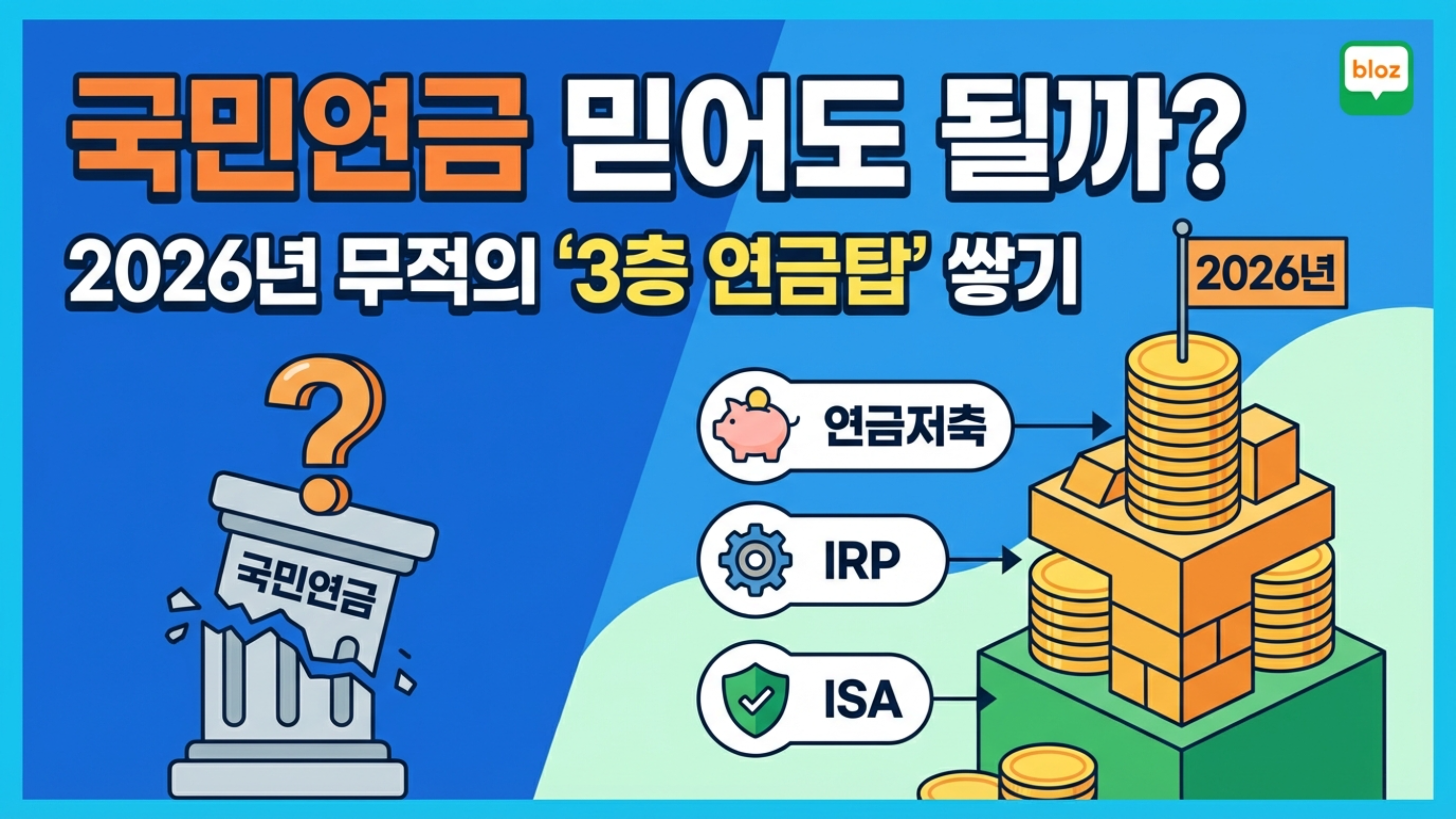 "국민연금 믿어도 될까?" 2026년 연금저축+IRP+ISA로 완성하는 무적의 '3층 연금 탑'